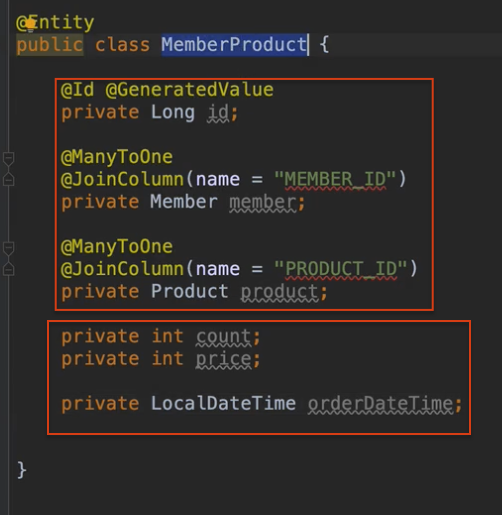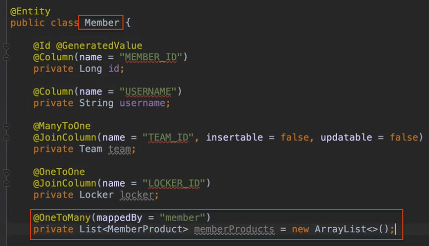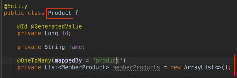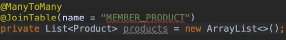 - Product 쪽에서 JoinTable(Member_product)을 선언하여 링크테이블을 생성해주는 어노테이션을 단다.