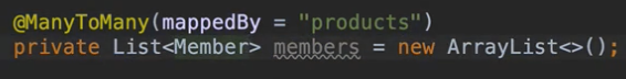 - Member 쪽에서 products쪽과 ManyToMany로 연결해준다.