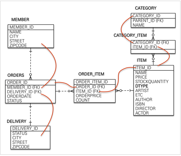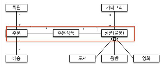 - 회원 <-> 주문 : 회원은 주문을 여러 건 할 수 있기 때문에 1:n의 관계이다.