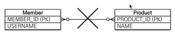 - 관계형 데이터베이스는 정규화된 테이블 2개로 다대다 관계를 표현할 수 없음