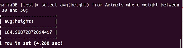 실습2 : 동물 테이블에서 키가 30cm~50cm 사이인 동물의 평균 키는?